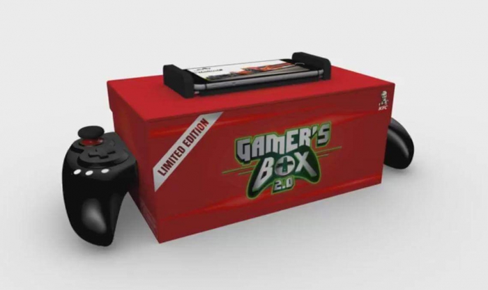 Современная игровая консоль идет в дополнение к еде и напиткам, заказываемых в KFC. «Мы оснастили приставку слотом для вашего телефона и всеми необходимыми кнопками. Всё, что вам нужно – это есть, играть, любить», - говорится в рекламе.