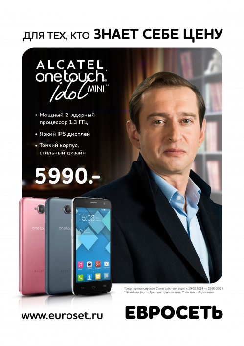 Мобильный ритейлер «Евросеть» запустил новую рекламную кампанию смартфона Alcatel Onetouch Idol mini, лицом которой стал популярный актер театра и кино Константин Хабенский.