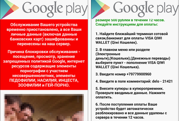 Если человек соглашается предоставить фейковым «Одноклассникам» права, на экране появляется сообщение: «Обслуживание вашего устройства приостановлено, ваши личные данные перенесены на наш сервер». После этого вирус предлагает перевести нужную сумму на электронный кошелек, чтобы разблокировать устройство.