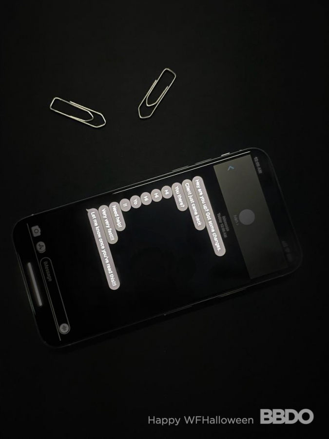Креаторы сингапурского BBDO предложили вспомнить чувство ужаса на рабочем месте (для тех, кто забыл о нём из-за вынужденной удалёнки): грязные провода, которые напоминают щупальца, старую розетку в виде маски из «Крика» или… ночные сообщения от руководителя, которые превратились в лицо вампира (но эта опция доступна всегда).