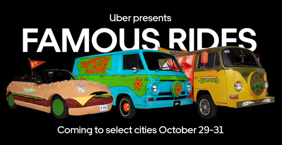 Вы мечтали когда-нибудь оказаться в знаменитых фургонах из мультфильмов про Скуби-Ду и черепашек-ниндзя? Или составить компанию Губке Бобу в очередной попытке получить водительское удостоверение? Всё возможно вместе с Uber в Майами, Лос-Анджелесе и Атланте. Счастливчики, которым предстоит поездка на необычном транспорте, также получат в подарок тематические маски персонажей настоящих владельцев автомобиля.