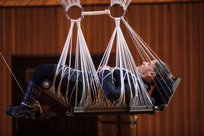 На инсталляции «Херофобия» художница Наоми Лакмайер, связанная в специальной конструкции, в течение девяти часов была поднята над сценой с помощью двадцати тысяч разноцветных гелиевых шаров.