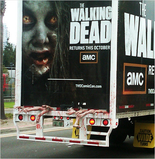 Сегодня стартует долгожданный 5 сезон культового сериала «Ходячие мертвецы» (The Walking Dead), транслируемый американским телеканалом AMC и телевещателем Fox. Традиционно запуск очередного сезона зомби-апокалипсиса сопровождается масштабными рекламными акциями, которые пугают до полусмерти жителей премьерных городов. Этот год не стал исключением.