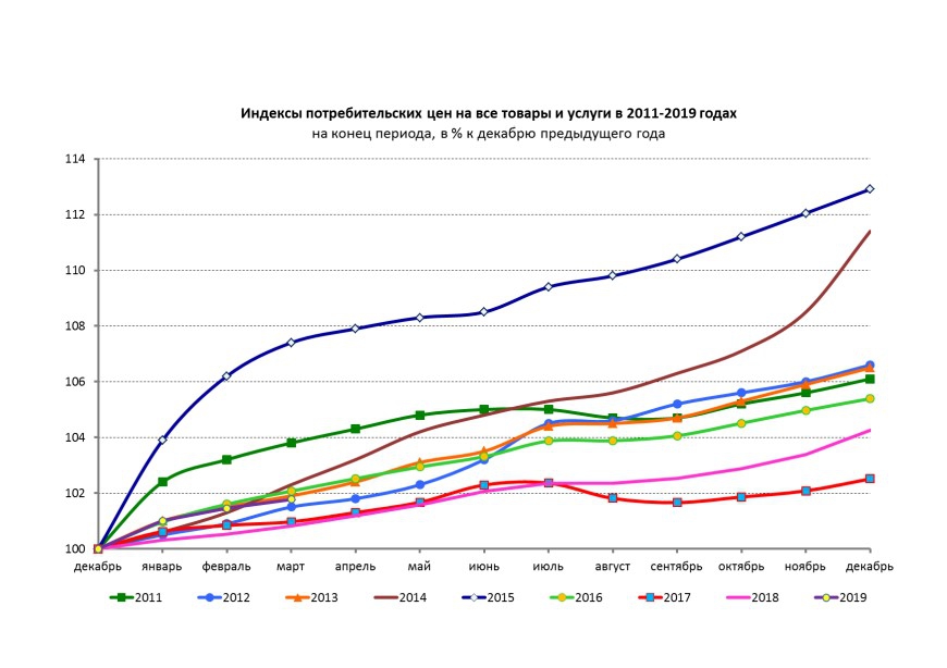 По официальным данным Росстата в марте 2019 года общий индекс потребительских цен (ИПЦ) составил 100,3%, в том числе по товарам — 100,4%, по услугам — 100,1%, с начала 2019 года — 101,8%.