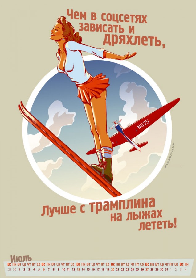 Художник-иллюстратор Андрей Тарусов выпустил календарь к предстоящим играм в Сочи, оформлением для которого послужили советские девушки в стиле пин-ап 50-x годов.