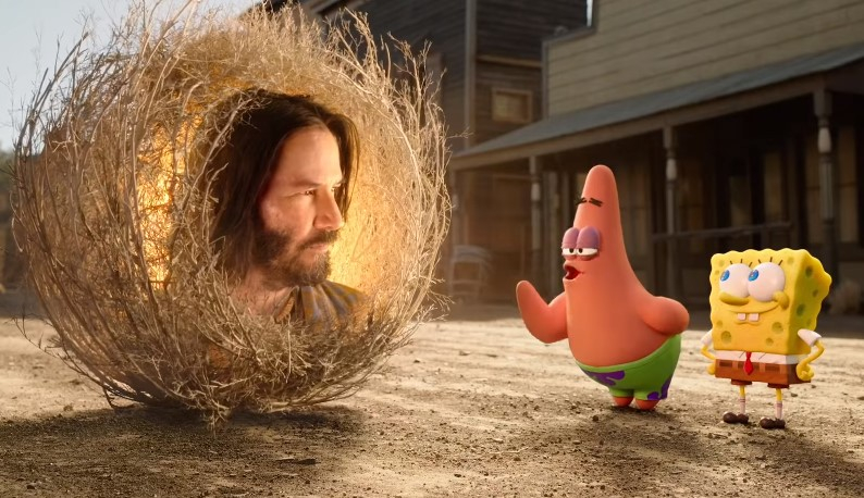 Лицо актера помещено внутрь перекати-поля, которое останавливается рядом с главными героями ленты. Ривз знакомится с друзьями Спанч Бобом и Патриком и вступает с ними в диалог.