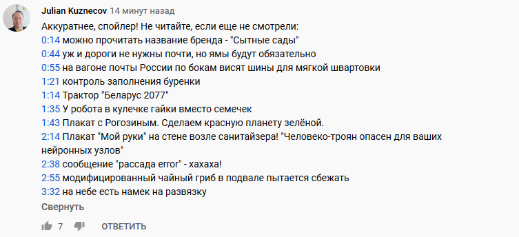 В комментариях пользователи отмечают не только спецэффекты, но и сюжет. Видео понравилось в том числе и самим фермерам. А самые внимательные уже нашли пасхалки, спрятанные в ролике.