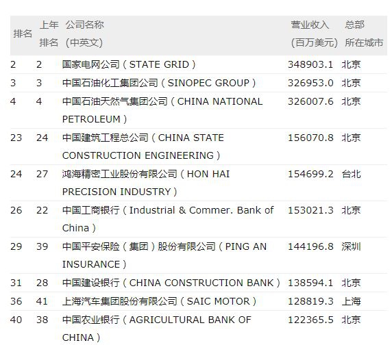 На втором, третьем и четвертом местах — State Grid (Государственная электросетевая корпорация Китая), нефтехимическая корпорация Sinopec Corp. и нефтегазовая корпорация China National Petroleum.