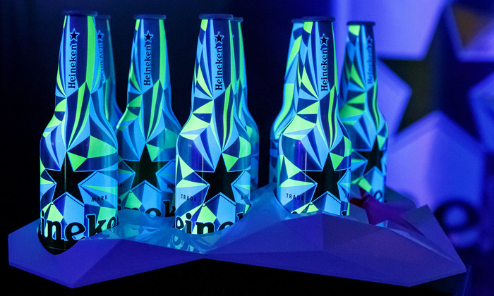 Голландский бренд пива Heineken представил новую клубную бутылку («Club Bottle») совместно с американским дизайнером Мэттом Муром, основателем студии MWM Graphics. Алюминиевая бутылка представлена в инновационном светоотражающем дизайне, который раскрывается в свете клубного ультрафиолета.
