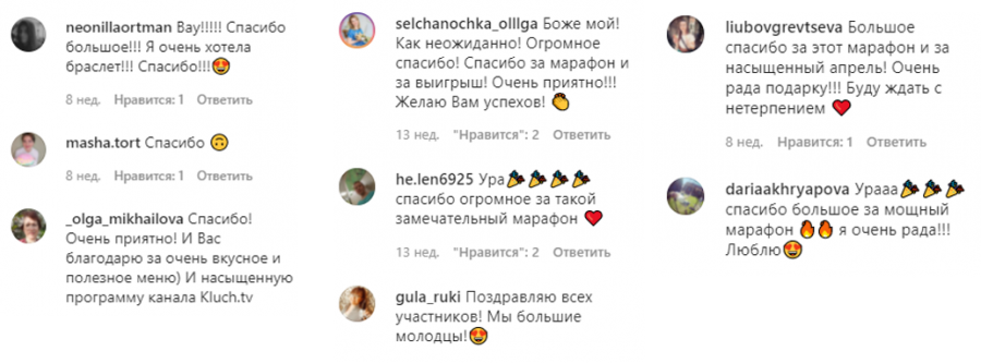Важно, что марафон пришелся по душе аудитории. Изначально планировалось, что участники разместят не менее 500 публикаций, но в итоге вышло 640 постов и сторис. Многие пользователи благодарили за полезный бесплатный контент и за источник мотивации, признавались, что узнали про телеканал и стали его зрителями.