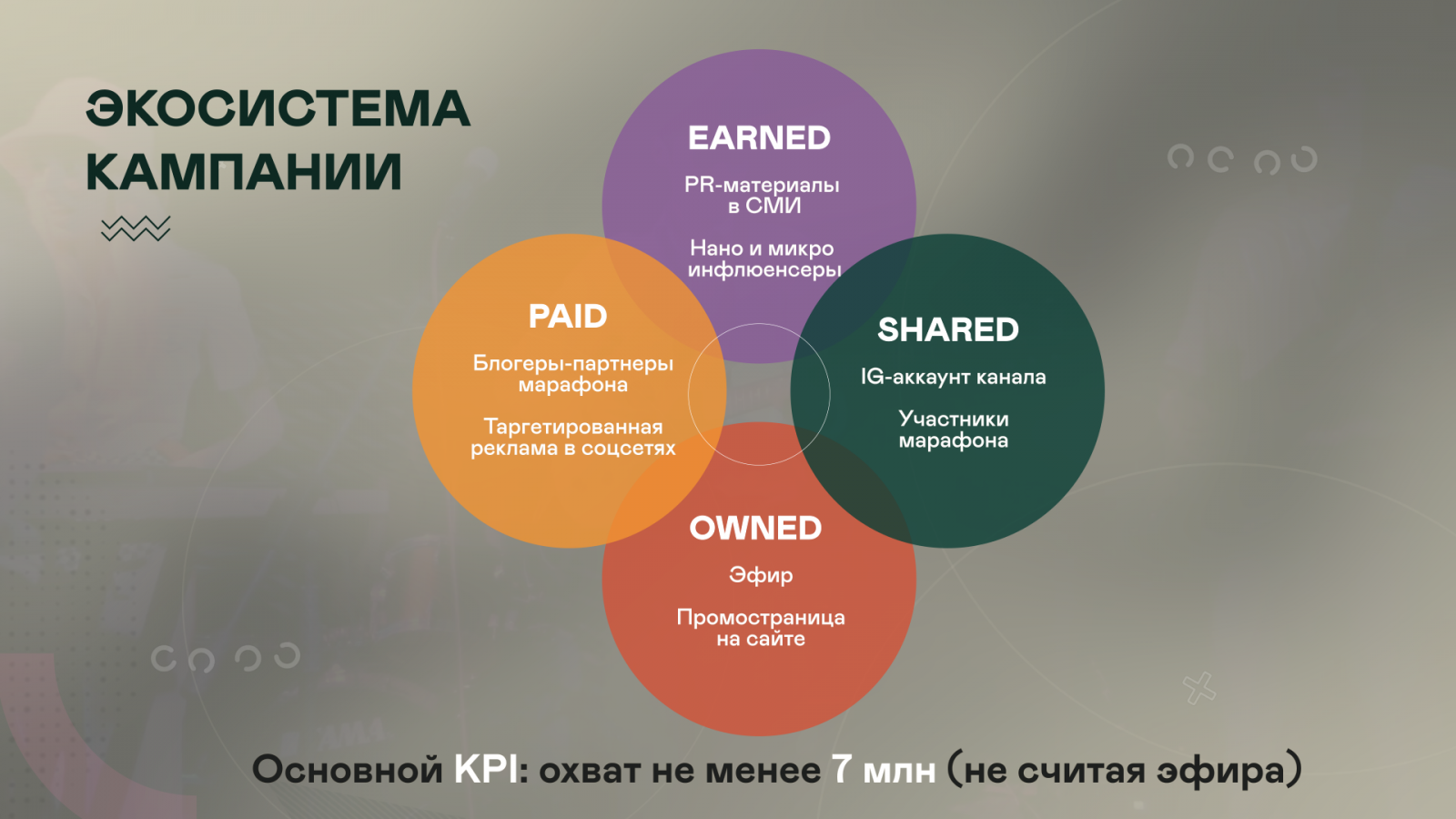 Расчет был на то, что сотрудничество с мидл-блогерами даст высокий уровень вовлеченности, но для увеличения охвата была также запущена таргетированная реклама в социальных сетях с учетом не только интересов пользователей, но и привычек телесмотрения. Несмотря на то что основной площадкой стал Instagram, было решено не ограничиваться одной платформой, а вести трафик на промостраницу кампании из всех популярных соцсетей, включая «Одноклассники». Запланированный охват в 6 млн контактов от рекламы был превышен и составил 6,6 млн.