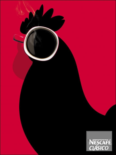 Nescafe запустил выпустил рекламный принт для кофе Nescafe Classic. Плакат намекает на то, что этот кофе бодрит не меньше, чем пение петуха по утрам.