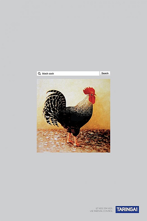 Сайт Taringa! выпустил рекламную кампанию о необходимости модерации интернета для детей. Слоган заявляет: «Пусть дети остаются детьми. Родительский контроль обязателен». Плакаты показывают, что с помощью функции «родительский контроль» поисковики будут отображать только безопасную информацию. Например по запросу «мокрая киска» и «черный петушок» можно получить изображение обычной мокрой кошки и простого черного петуха.