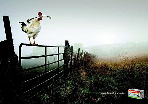 Бренд таблеток для тренировки собак Bob Martin разработал серию принтов о том, как их средство действует на домашних животных. Плакаты показывают, какими послушными и умными после препарата стали петух, ягненок и корова, и намекают, что на собаку таблетки подействуют еще сильнее.