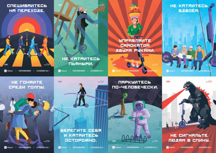 Сервисы Urent, «Ситимобил» и Whoosh запустили совместную кампанию, в которой вместе сформулировали этические стандарты для всех пользователей электросамокатов, рассказали Sostav представители сервисов. Они разместили на улицах Москвы постеры, которые рассказывают о правилах использования самокатов.