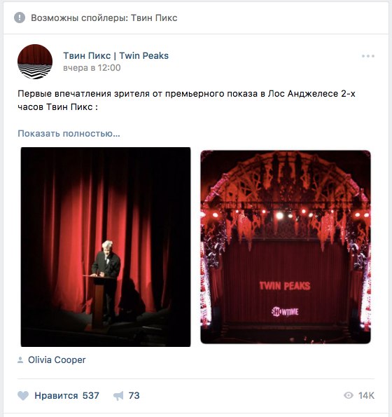 Разработчики также решили предупредить пользователей о возможных спойлерах. Перед записями с информацией о сериале появится предупреждение, а основной текст поста свернется до «Показать полностью…». Предупреждения о спойлерах появятся во всех версиях сайта (декстоп, iOS, Android).
