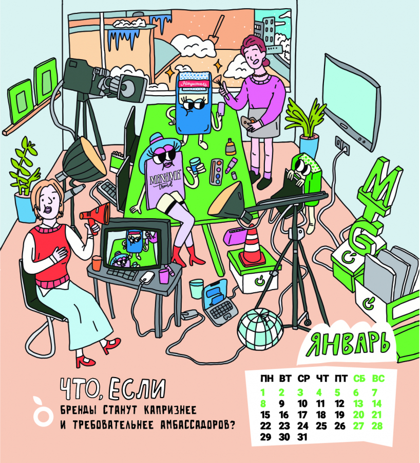 Каждый раз, поздравляя наших клиентов и партнёров с новогодними праздниками, мы хотим задать определённое настроение на весь будущий год. И корпоративный календарь — это декларация, своеобразный манифест! Он должен быть связан не только с агентством MainTargetGroup, его традициями и людьми, но и хорошо отражать тенденции всей рекламной отрасли. Производство контента, а не его закупка — это, безусловно, тренд уходящего и наступающего года. И, конечно, работа продакшна телеканала «2×2» яркий пример этого тренда! Поэтому наш новый календарь плод совместного творчества с креативной командой «2×2».