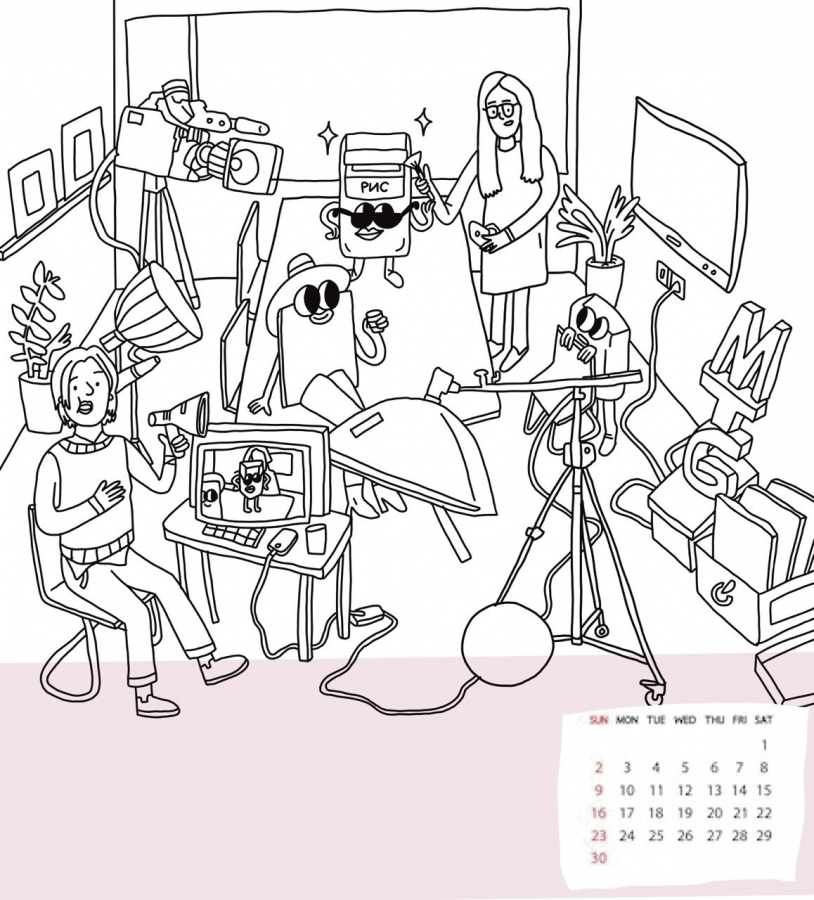 Для многих компаний корпоративный календарь — это незначительная история. К ней относятся, если не пренебрежительно, то уж точно формально. Но для нас календарь — это один из самых важных PR-инструментов. Всё потому, что календарь — незаменимый офисный атрибут. Им пользуются все, от молодого миллениала-креативщика, до взрослого медиабаинг-директора. Это попросту удобно. Поэтому нашей задачей было максимально креативно заявить на календаре сотрудников и айдентику агентства, отразить боли и тенденции рекламного рынка и подать это в яркой креативной обертке. Так, чтобы партнёры поставили на свой стол именно наш календарь.