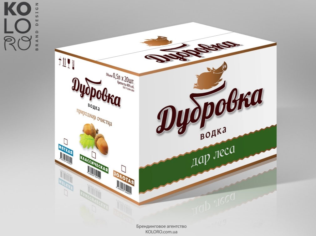 Харьковская Компания KOLORO разработала бренд для российской водки «Дубровка». Новый экологичный бренд уже поступил в продажу.