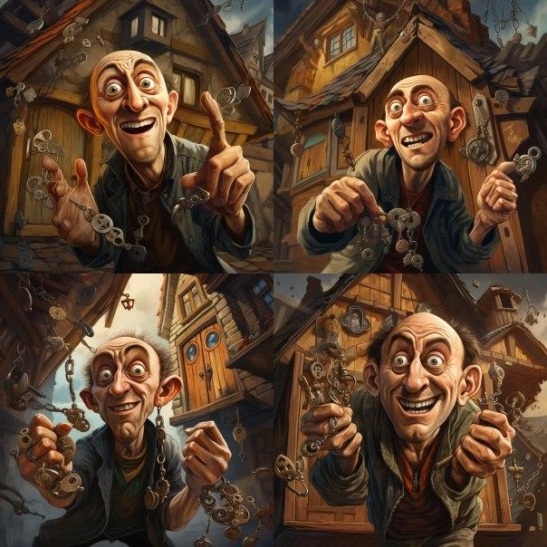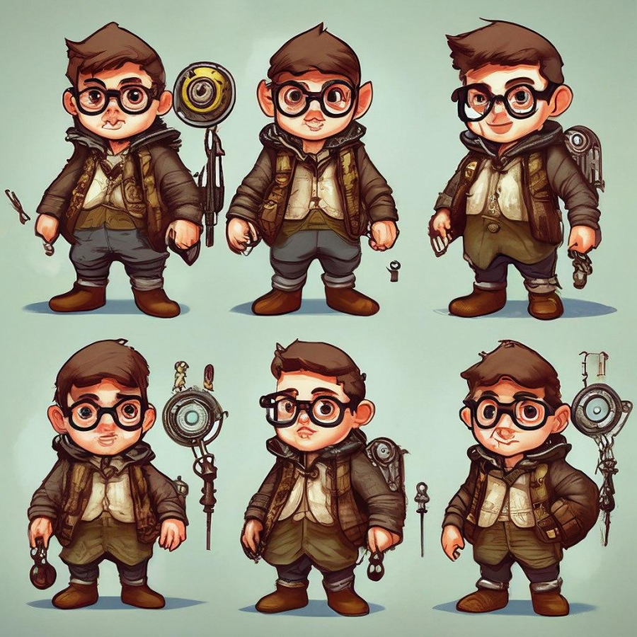 Такие варианты промптов мы предлагали нейросети: «низкий молодой гном домовой в полный рост в очках в стиле славянского комикса в шести разных позах»
