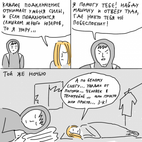 Тем временем, у Раздающей появился свой паблик «Света в мире без интернета», на который подписались более 10 000 человек. Там публиковались новые комиксы о приключениях Раздающей от Duran и скетчи на тему жизни без интернета.