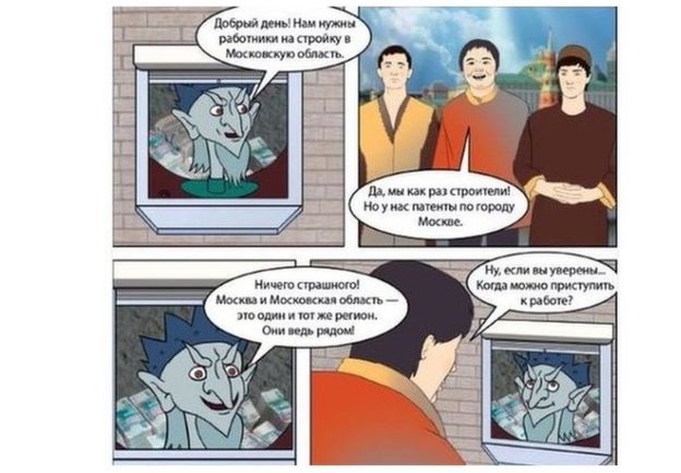 Мэрия Москвы подготовила комиксы с правилами поведениям для мигрантов. На примере героев русских сказок, читателям рассказывается, как следует вести себя в столице. Эксперты говорят, что мигранты в комиксе противопоставляются этническим русским, а содержание методички должно быть понятно даже тем, кто плохо владеет русским языком.
