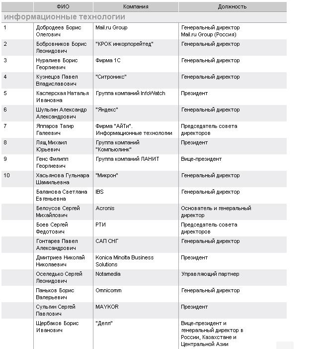 Лучшим директором в сегменте информационных технологий в номинации «топ 250 высших руководителей» признан генеральный директор Mail.ru Group в России Добродеев Борис Олегович.