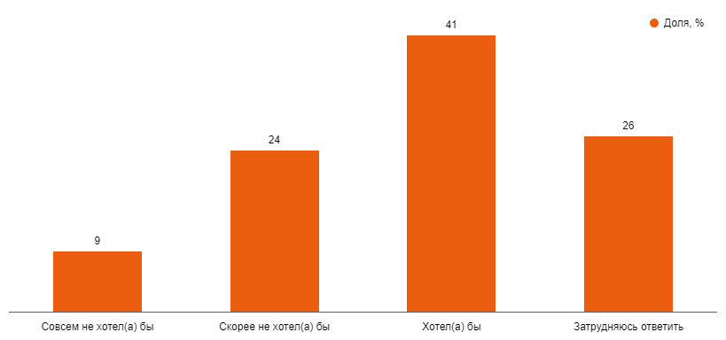 Респондентам было предложено оценить каждый фактор по 10-балльной шкале, что позволяет довольно точно оценить отношение к ним. Результаты показали, что ответы устойчиво образуют три кластера. В первый вошли оценки от 1 до 5, что означало низкую важность фактора для респондента. Во второй — от 6 до 8, что означало среднюю важность. Наконец, в третью группу вошли оценки 9 и 10, это высокая важность. Ниже мы представили данные именно третьей группы, т. е. приводятся доли респондентов, указавших данные факторы, как имеющие для них высокую важность.