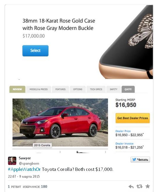 Не растерялись и обычные интернет-пользователи; cтоимость новых гаджетов Apple сравнили с автомобилем Toyota и даже с обучением в колледже.