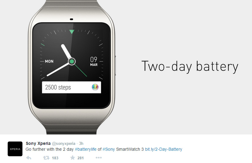 Производители гаджетов продолжили маркетинговую войну со своим главным конкурентом: компания Sony и бренд часов Pebble иронизировали над 18-часовым зарядом, который держат батарейки часов, и над продажами, которые Apple начнет лишь в конце апреля. Интересно, что основной соперник Samsung никак не отшутился насчет новых девайсов конкурента.