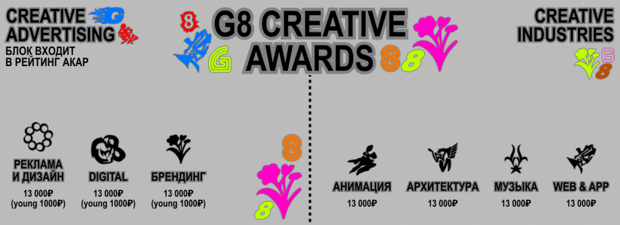 1 мая начался прием заявок от креативных специалистов на конкурс G8 Creative Awards. Работы принимаются в семи номинациях до 1 августа.