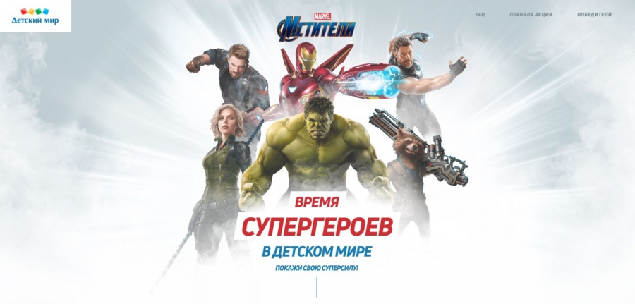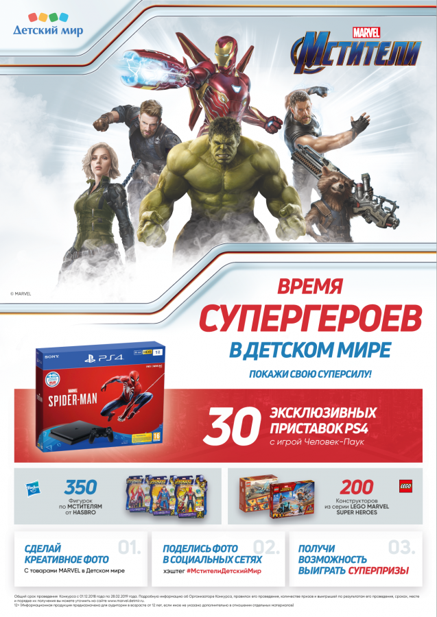 С 1 декабря 2018 по 15 января 2019 года принимались работы на творческий конкурс «Время супергероев» с товарами по франшизе MARVEL. Сейчас организаторы — компания Disney в России и СНГ, сеть магазинов «Детский мир» и агентство