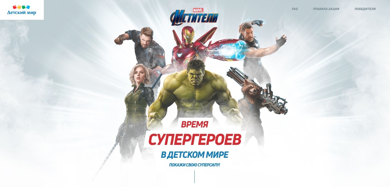 По его условиям следовало сфотографироваться с товарами по франшизе MARVEL в любом магазине сети и выложить фото на сайт или в Instagram с хэштегом #МстителиДетскийМир (ничего покупать при этом не требовалось).