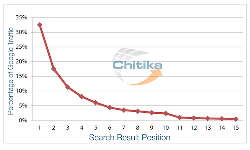 Распределение кликов в топ-10 поисковиков неравномерно. Средний CTR первого места – 35%, а десятого около 2%. Таким образом, находясь на 10м месте, вы получите на порядок меньше клиентов, чем на первом.