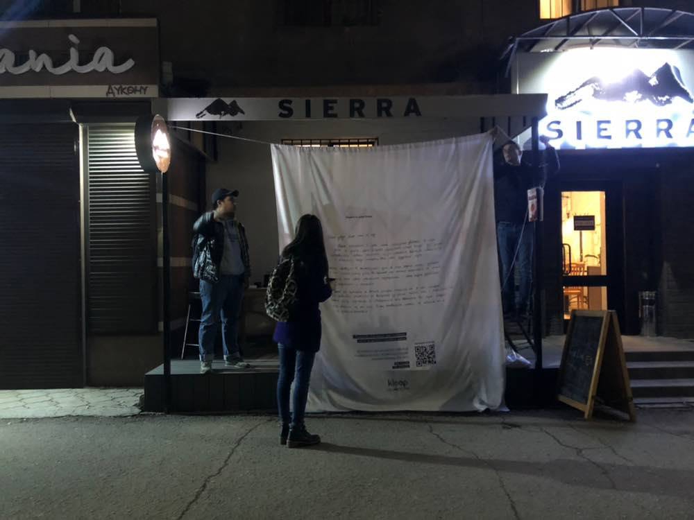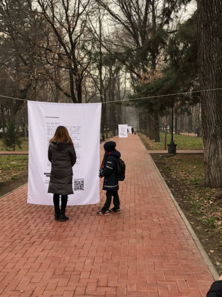 Мы хотели собрать подписи, сделать финальный кошого с ними и после этого повесить его напротив парламента. Но, оказалось, что местные жители очень боятся что-то подписывать и тем более оставлять свои данные, поэтому от этого этапа пришлось отказаться.