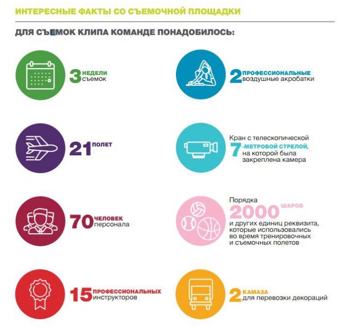 По словам специалистов агентства TUTKOVBUDKOV, самым знаковым событиеи за всё время съёмок стал дубль, названный группой “золотым”. Во время него был совершен полёт, в течение которого удалось отснять все сцены клипа без единой ошибки - этот ролик и стал самим клипом.