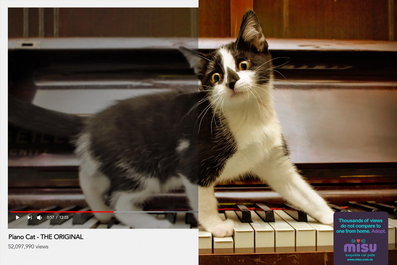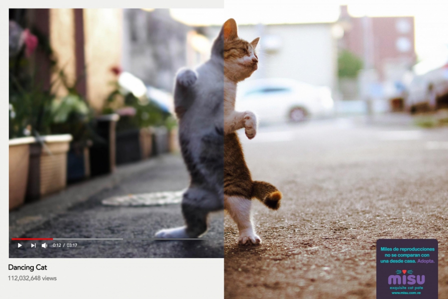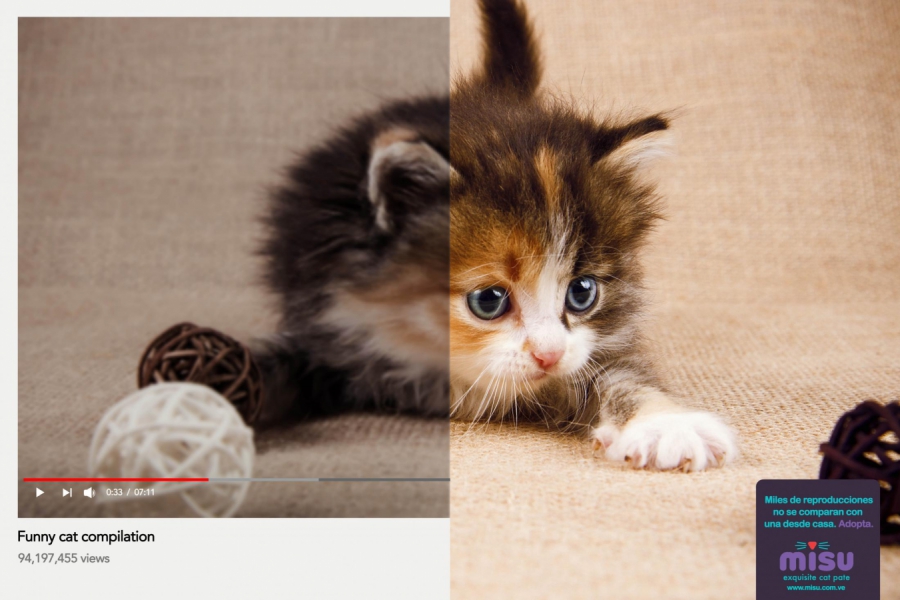 Наверное, нет ничего популярнее видео с котами на YouTube. Принты, разработанные агентством JWT Venezuela для Misu, показывают, что реальные питомцы гораздо лучше, и призывают взять котиков из приюта.