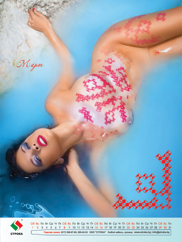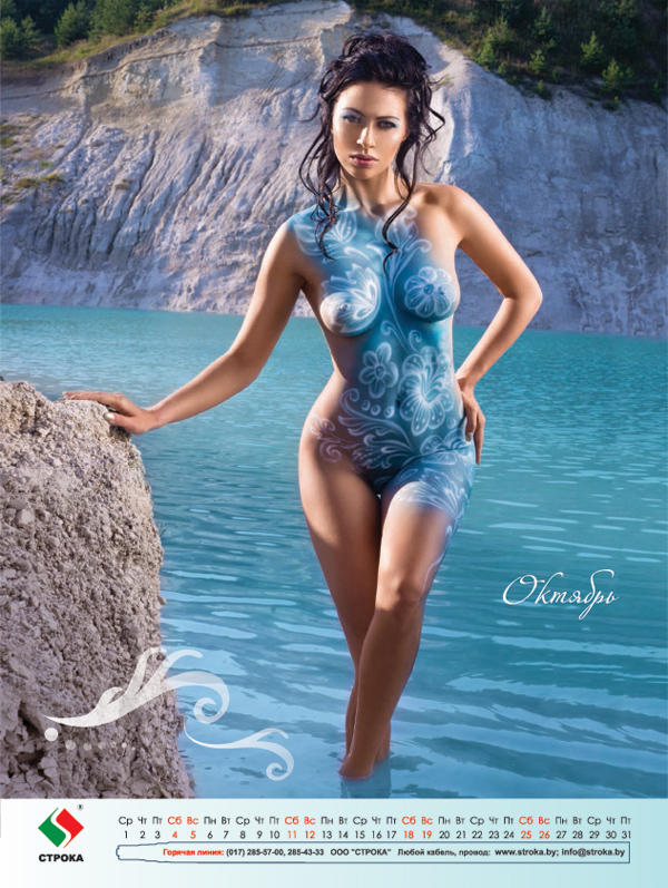 Поставщик кабельной продукции в г. Беларусь ООО «СТРОКА» продемонстрировало гибкость своих поводов, через обнаженных девушек в эротическом календаре на 2014 год. Раскрасил обнаженных барышень художник по боди - арту Андрей Осипов.