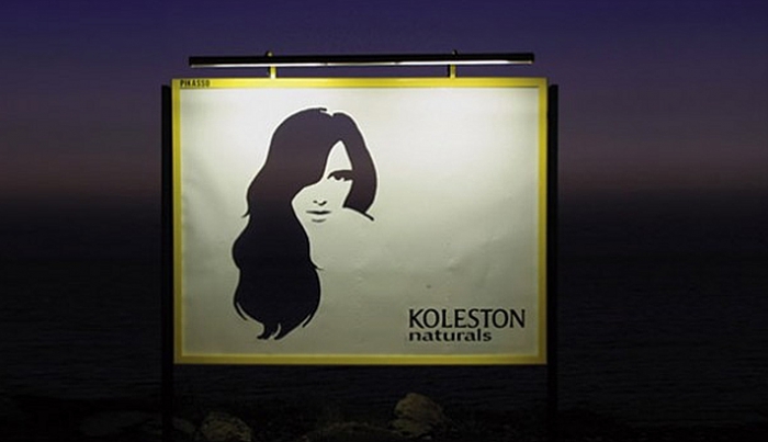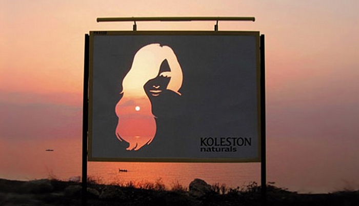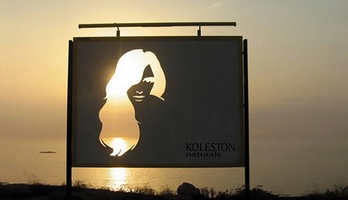 Более романтично погоду в наружной рекламе использовал бренд средств по уходу за волосами Koleston. Оттенок кудрей модели на рекламном щите менялся в зависимости от времени суток и цвета неба.