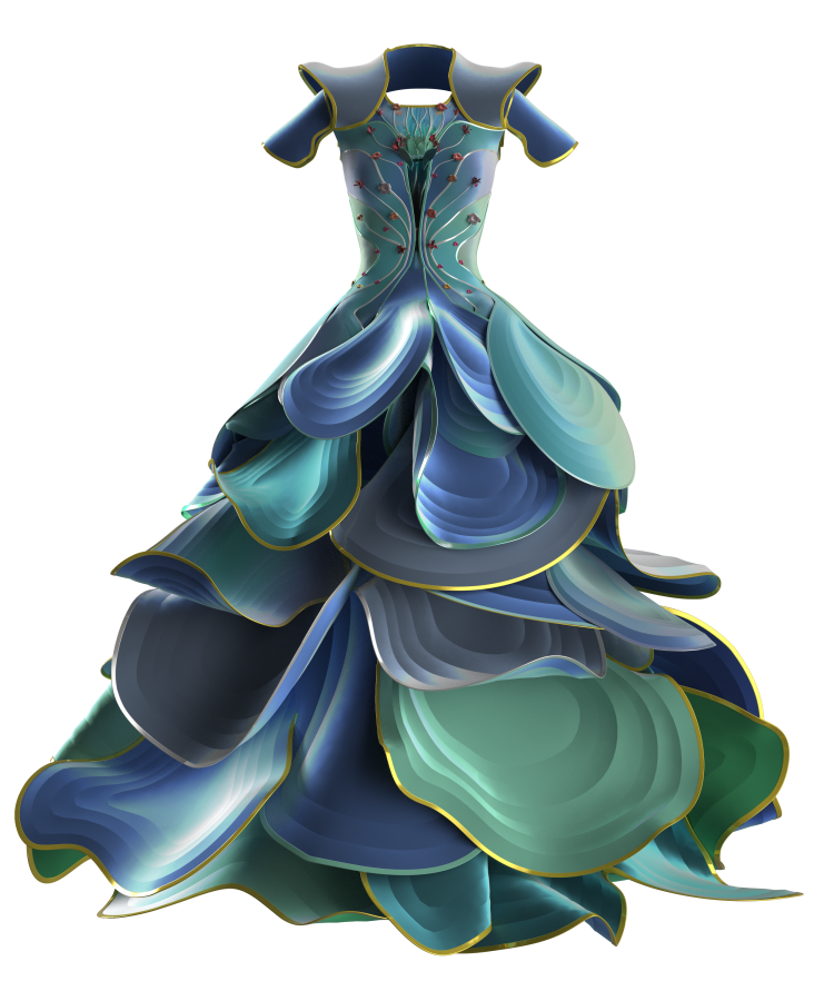 В первоначальных версиях платья присутствовали прозрачные текстуры, но прозрачное 3D-платье сложно «посадить» на человека при массовом использовании.