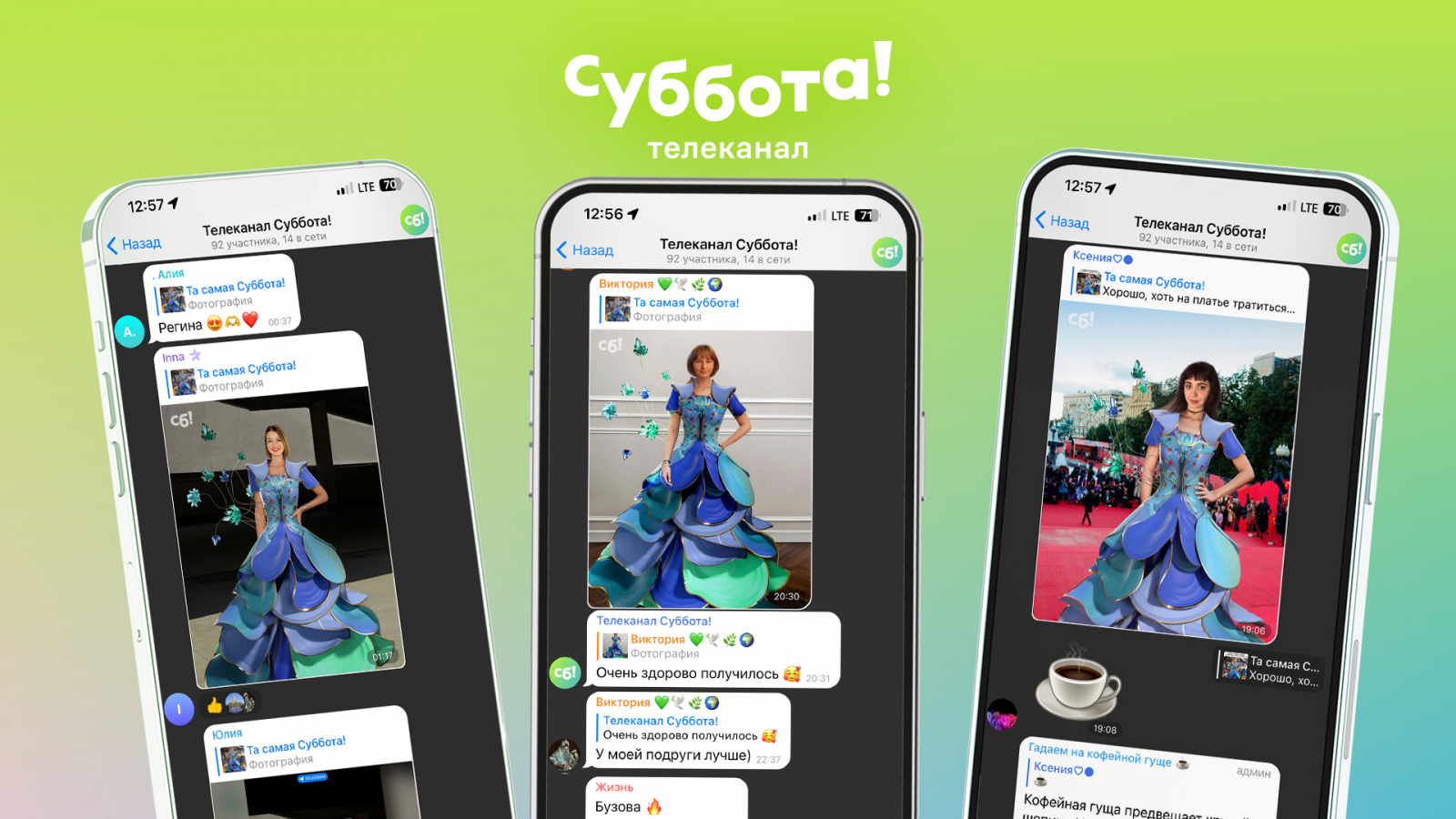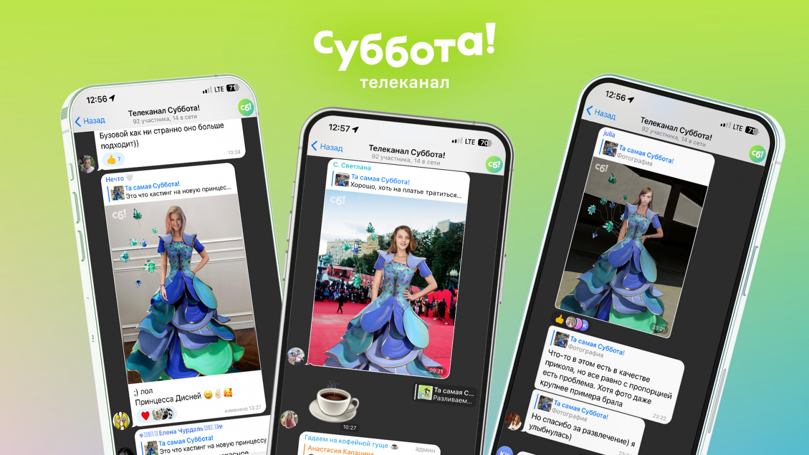 Зрители «Субботы!» тоже могли примерить цифровое платье. Для этого нужно было перейти по QR-коду, размещенному в эфирных промо-роликах и социальных сетях канала, загрузить свое селфи в чат-бот и дождаться фото в платье. Пользователи делились полученными фотографиями в сообществах канала и ставили новый образ на юзерпик.