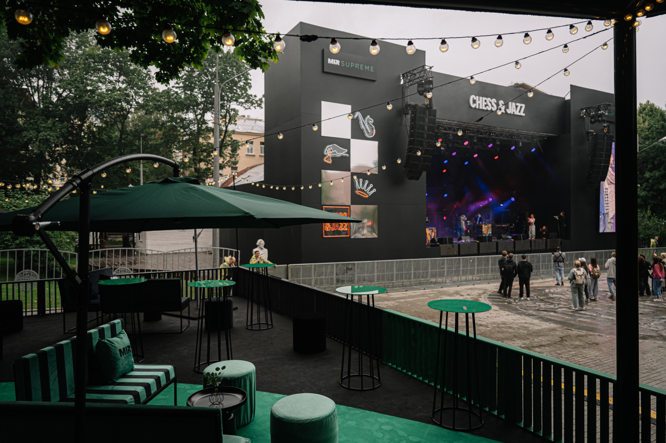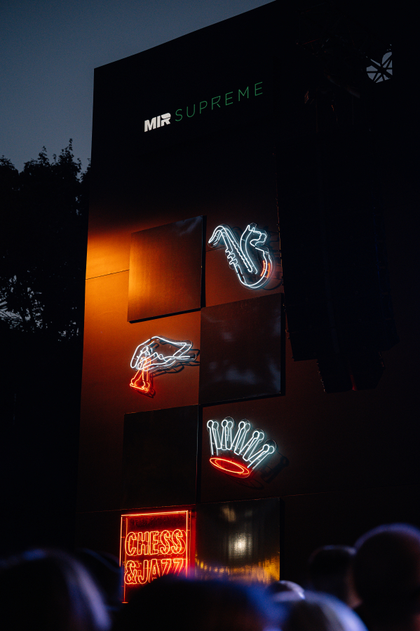 Команда агентства Balagan разработала интеграцию премиальной карты Mir Supreme от платежной системы «Мир» в фестиваль шахмат и музыки Chess & Jazz. Креаторы решили создать три брендированные зоны: Chess Cup, Chess Village и VIP lounge и сделать визуальный акцент на двух основных цветах бренда — черном и зеленом. Именно в них раскрасили шахматные доски, на которых играли посетители фестиваля. Также акцент сделали на арт-фотозоне из разноуровневых стел.
