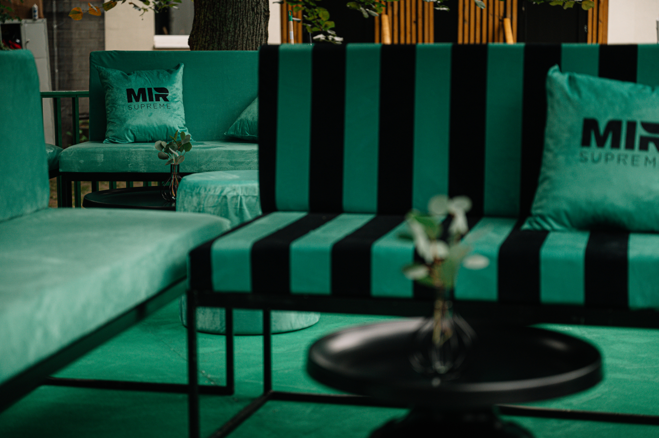 VIP lounge — зона для отдыха и общения с видом на сцену, где проходила музыкальная программа. Пол украшал узнаваемый элемент Mir Supreme — большой лепесток. Всем вип-гостям выдавали брендированные вееры с копирайтом на шахматную тематику — «Плыву ладьей», «Играю как ферзь», «Я на коне».