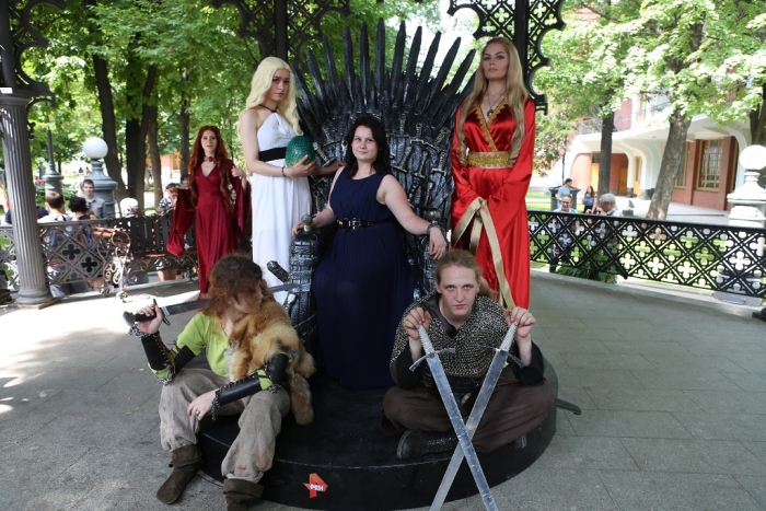 Посидеть и сфотографироваться на культовом Железном троне, почувствовав себя властителем Вестероса, можно было на II ежегодном фестивале РЕН ТВ «Игра престолов». Мероприятие прошло в конце июня в парке Победы на Поклонной горе. Здесь можно было найти различные тематические развлечения – от чеканки монет до уроков фехтования, поучаствовать в процессе изготовления рыцарских доспехов или сделать прическу у средневекового мастера. Не обошлось и без встречи с лютоволками, роль которых исполняли хаски.