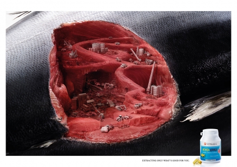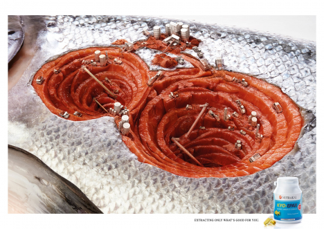 В рекламных принтах от таиландского отделения агентства Dentsu Plus показали необычный способ добычи рыбьего жира.