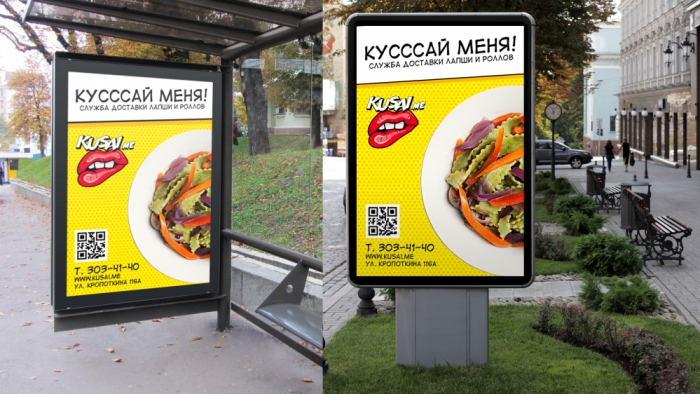 Агентство «Круче!» создало бренд для новой службы доставки азиатской кухни с аппетитным названием «Kusai.me». Думая над названием, креаторы изучили существующие бренды на рынке Новосибирска. На нем превалируют названия, соответствующие традиционному японскому характеру кухни: драконы, суши, иероглифы и прочие вещи прекрасны, но авторам хотелось придать бренду особенную харизму.