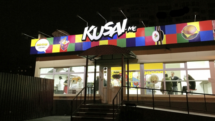 Яркая вывеска самого заведения радикально отличается от конкурентов и вызывает активный интерес у прохожих. Интерьер же самого заведения настолько ярок и необычен, что провоцирует посетителей сделать селфи на фоне стены с фирменными иллюстрациями Kusai, уверяют авторы проекта.