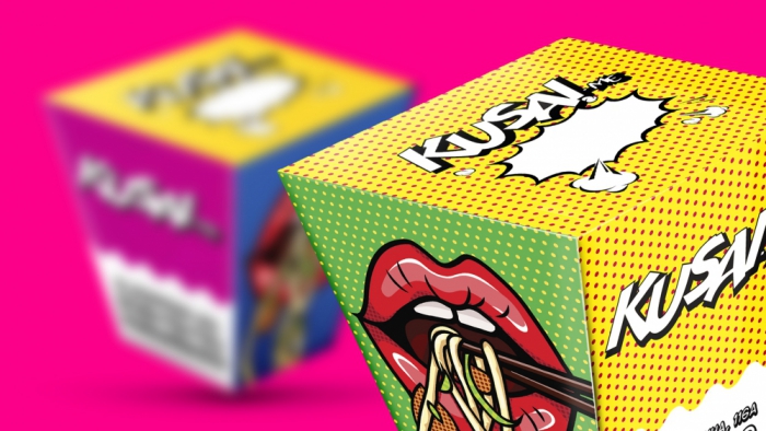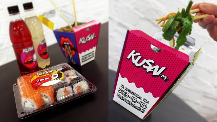 Название «Kusai.me» было решено подкрепить оригинальным фирменным стилем с элементами поп-арта. Использование этой стилистики характеризует бренд, как современный, позитивный, ориентирующийся на веселье, эстетику и удовольствие, считают в агентстве. Сочные иллюстрации делают элементы фирменного стиля аппетитными без использования прямолинейного изображения блюд или классической азиатской символики.
