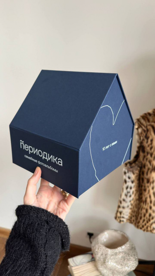 Например, сервис печати фотокниг «Периодика» в честь 10-летия разослал клиентам персонализированные боксы. В коробку в виде домика, который сразу намекает на семейность, поместили: