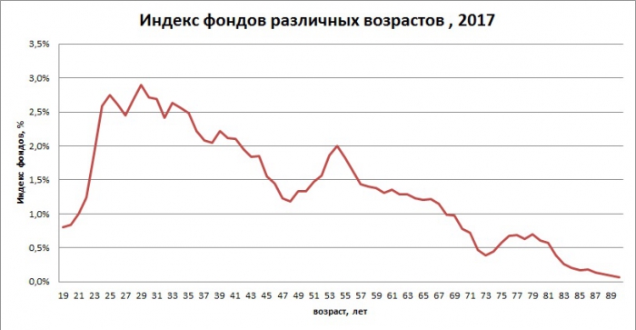 Кроме такой особенности демографической структуры, уже четверть века наблюдалась определенная аномалия и в структуре распределения доходов. Обычно максимальные доходы работающее население имеет в возрасте 40-50 лет, т.е. в период, когда уже сформированы полноценные профессиональные навыки, а существенных проблем со здоровьем еще нет. В последние десятилетия наблюдалась тенденция сдвига в более старшие возрастные группы, в том числе как и из-за увеличивающихся сроков обучения, так и в результате более здорового образа жизни.